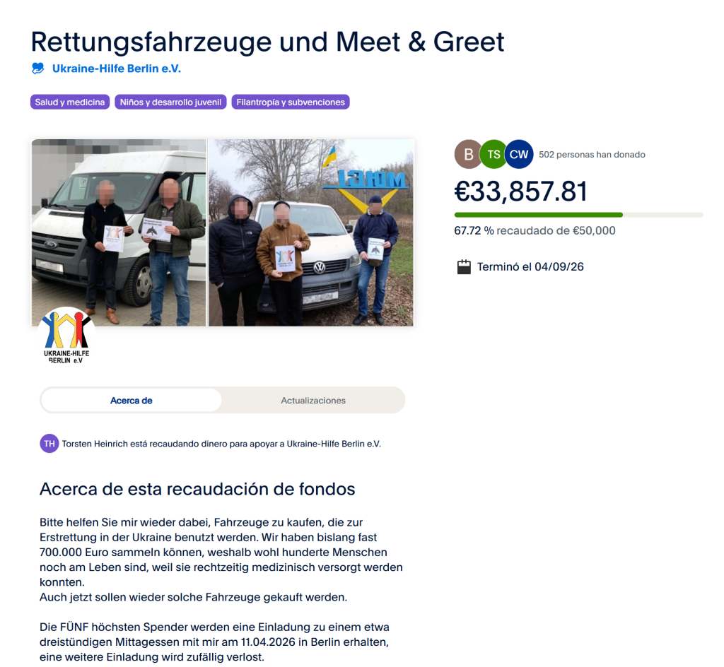 Im April 2026 habe ich erneut Geld für Rettungsfahrzeuge gesammelt, um damit Menschenleben in der Ukraine zu retten. Die höchsten Spender wurden zu einem Mittagessen in Berlin eingeladen.